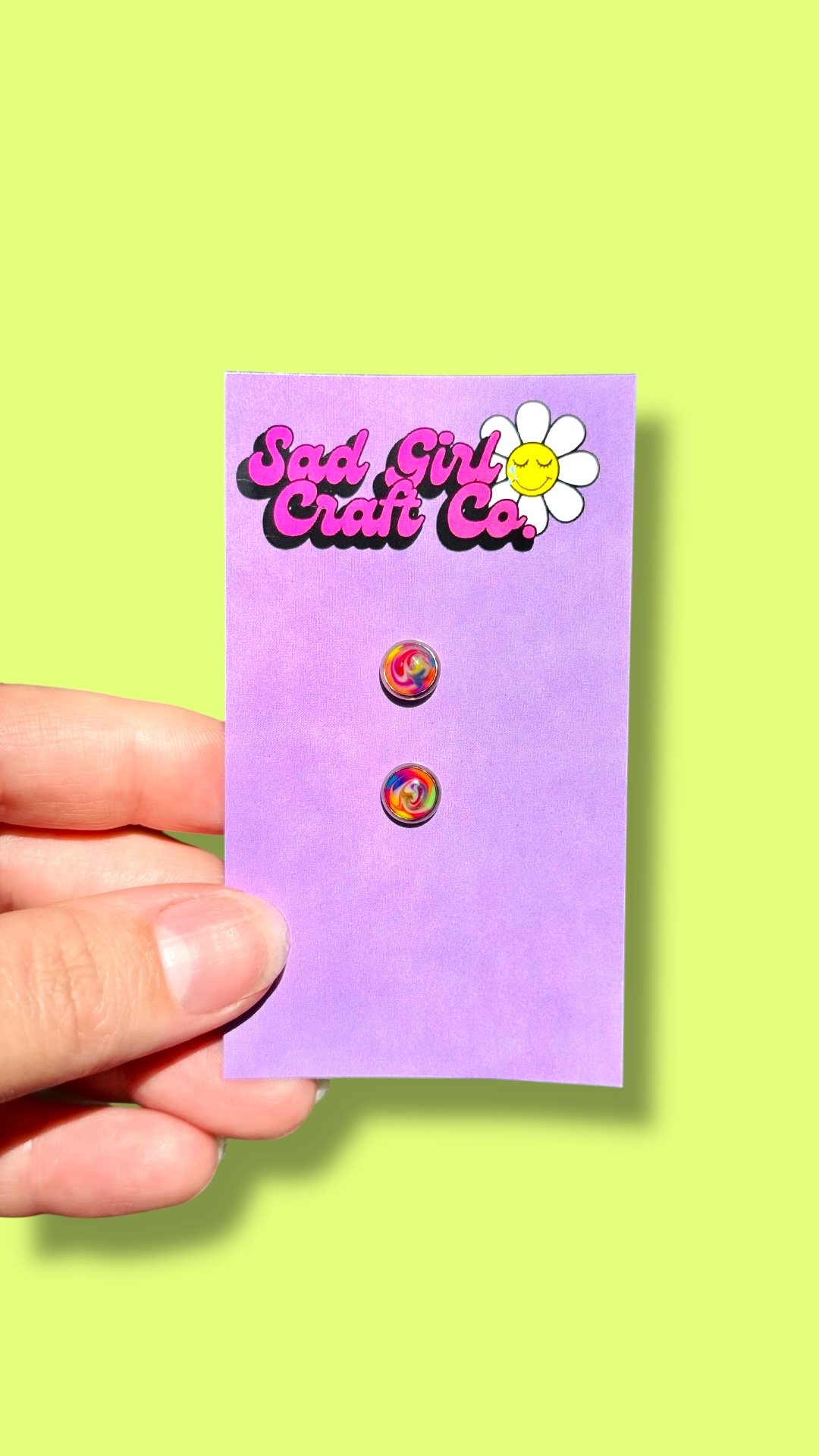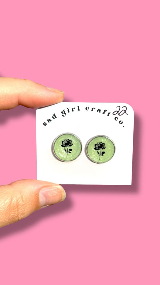 Stainless steel flatback earrings are perfect for 24/7 wear! Each pair is custom filled with a uv resin mixture and real dried pressed flowers.