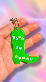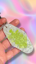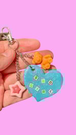Keychains are acrylic blanks with vinyl decals, UV resin, polymer clay, or metal stamped aluminum